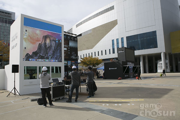 국내 최대 게임전시회인 '지스타2015'가 손님 맞이 준비에 한창이다.