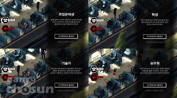 열차에 탑승해 목적지로 향해 가던 플레이어, 게임이 시작되면 캐릭터를 선택할 수 있다.