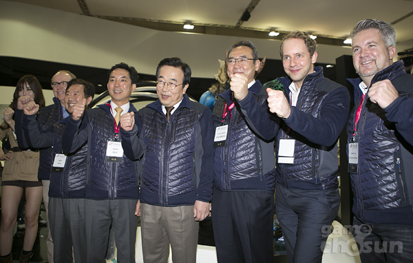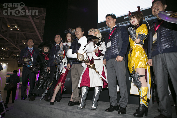 ▲ 파이널판타지14 코스프레 모델들과 사진 촬영하는 서병수 부산시장