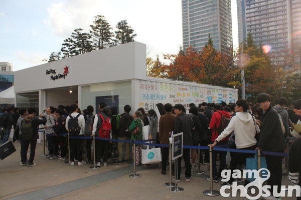 국내 최대 게임쇼 '지스타 2015'가 첫날부터 그 열기가 뜨겁다. 특히 자회사를 포함해 최대 규모 300부스로 참가한 넥슨은 야외에 'RePlay, MapleStory'라는 이름의 메이플스토리 특별부스를 마련했다.