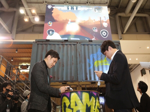 부산 벡스코에서 열리는 국제게임전시회 ‘지스타 2015’가 12일 막을 올렸다. 올해 메인 스폰서인 네시삼십삼분은 BTC관 내에 콘테이너를 활용한 부스를 꾸미고 '마피아', '로스트킹덤', '이터널클래시' 세 작품 체험관을 운영중이다.