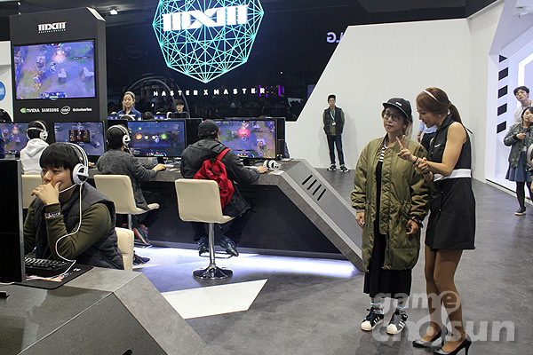엔씨소프트(대표 김택진)는 게이머들의 축제 '지스타2015'에서 신작 PC온라인게임 ‘MXM(마스터X마스터)'를 시연 출품한 가운데, 여성그룹 SES의 '슈'가 MXM 시연 부스를 방문해 게임 소개를 듣고 MXM과 결합한 다양한 문화 콘텐츠를 관람한 후 MXM을 직접 시연했다.