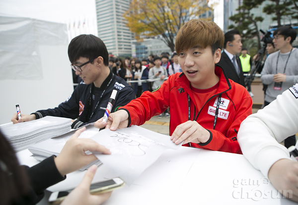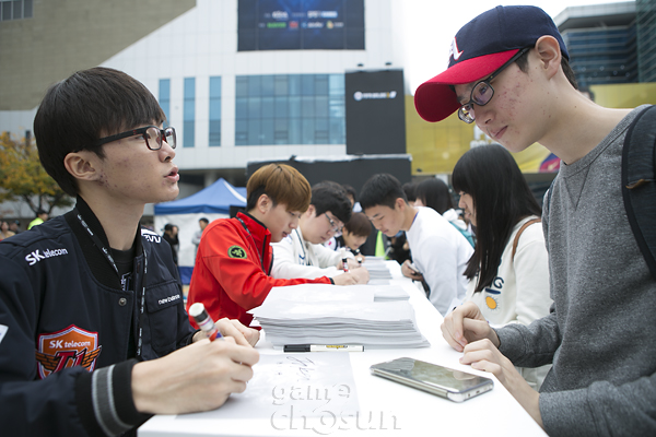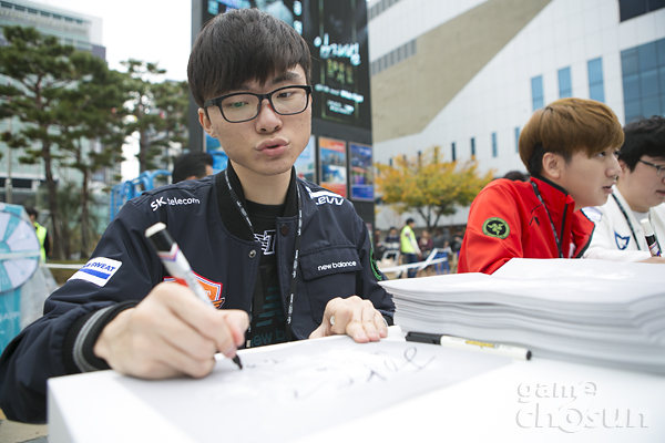 오후 2시부터 진행된 이번 사인회에는 '페이커' 이상혁, '스코어' 고동빈, '퓨리' 이진용, '캡틴잭' 강형우, '와치' 조재걸이 참석해 지스타 팬들과 만나는 시간을 가졌다.