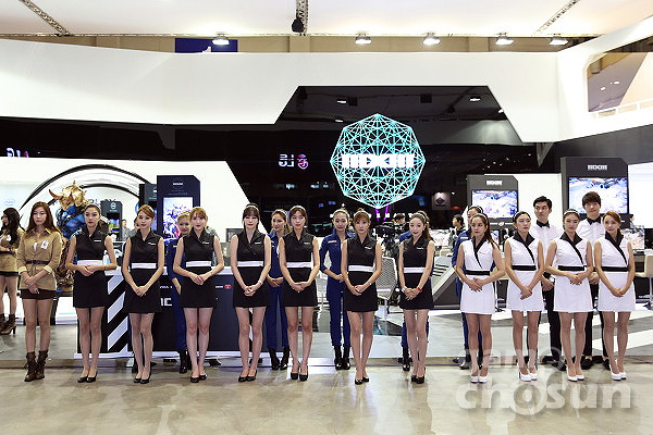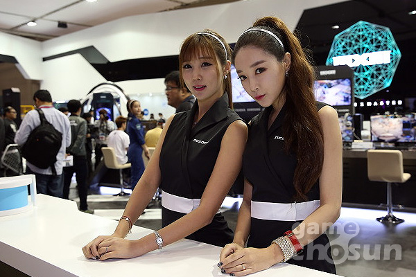 엔씨소프트는 지스타 부스에 아름다운 부스걸들을 배치해 MXM을 시연하기 위해 부스를 찾아온 방문객들을 맞이하며 MXM 시연과 함께 퓨전 콘텐츠을 다양하게 선보이고 있다.