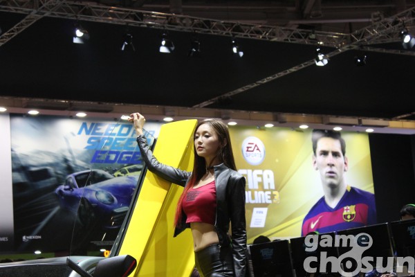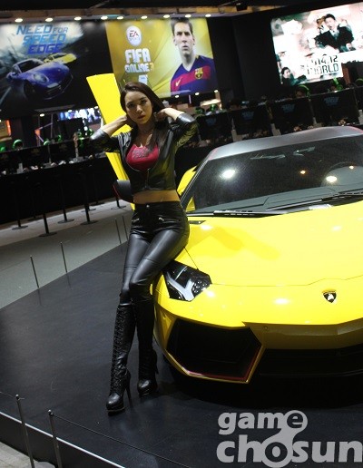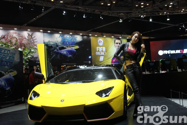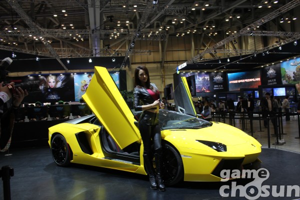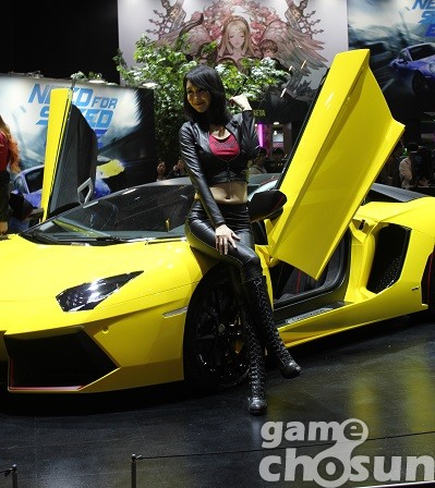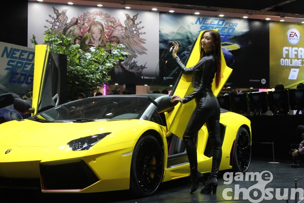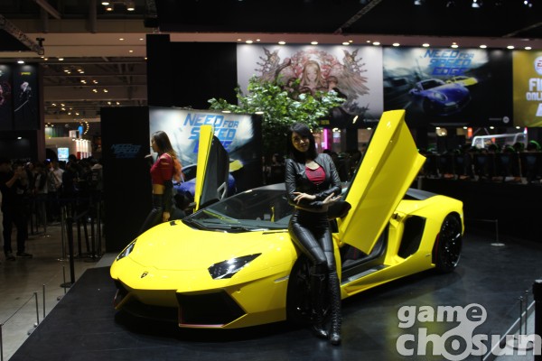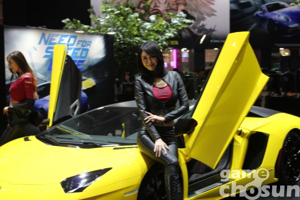 넥슨 니드포스피드엣지 부스에는 람보르기니 차량과 함께 부스걸이 방문객을 유혹해 발걸음을 멈추게 했다.