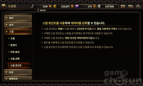 ▲ 게임 내 도움말에서 스킬 포인트 관련 내용을 확인할 수 있다.