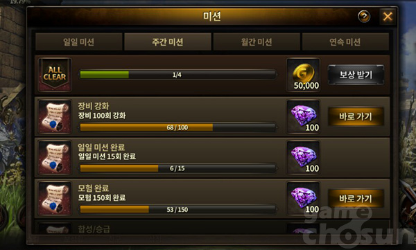 ▲ 캐릭터별로 주간 미션과 월간 미션으로 각각 잼을 획득할 수 있다.