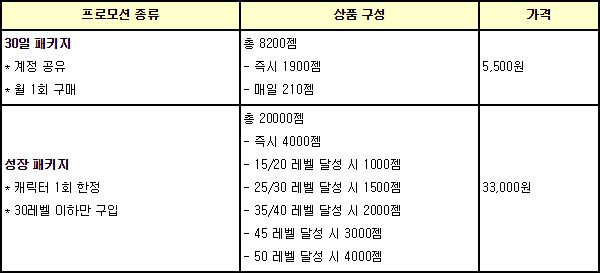 유저들 사이에서 30일 패키지와 성장 패키지는 이른바 '가성비(가격대비성능비)'가 가장 좋은 상품으로 알려져 있다.