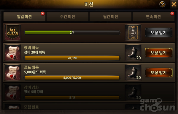 ▲ 일일 미션을 수행하면 하루 80개의 모험 포인트를 확보할 수 있다.