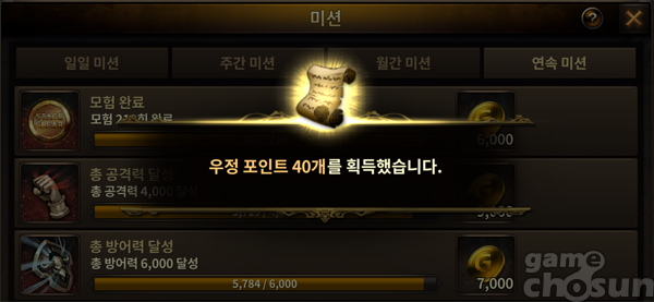 또 연속 미션과 특별 미션의 보상을 통해서도 우정 포인트를 획득할 수 있고, 이렇게 모은 우정 포인트는 100개당 모험 포인트 50개로 교환할 수 있다.