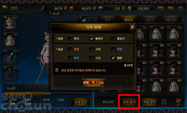 혼란스러운 와중에서 실수로 원치 않는 장비를 판매 혹은 강화 소재로 사용하는 일이 생길 수도 있고, 골드를 획득하기 위해 일반 아이템을 판매할 때에도 하나하나씩 판매하는데 어려움을 느낄 수 있다.