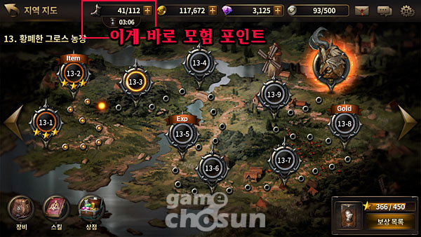 장비 뽑기를 하는데 300젬이 소모되고 300젬이 3300원에 판매되는 셈이니 무과금 유저에게 젬을 소모하는 선택은 쉬워 보이질 않는다. 대신 투자한 만큼 얻는 모험포인트로 열심히 사냥해서 얻는 전리품과 경험치를 얻을 수 있다는게 '지름'의 당위성을 보장해주긴 한다.