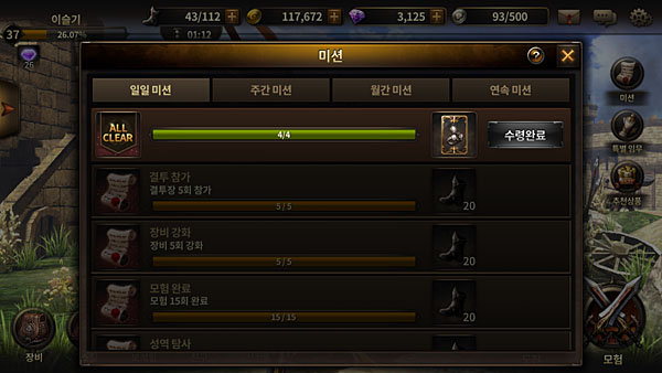 ▲ 일일미션으로 소량의 모험 포인트를 얻을 수도 있다.
