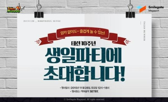 또 다른 장수 온라인게임 '테일즈런너'도 10살 생일을 맞았다. 스마일게이트메가포트는 라온엔터테인먼트가 개발한 온라인 레이싱게임 '테일즈런너'의 서비스 10주년 생일파티를 오는 28일 개최한다.