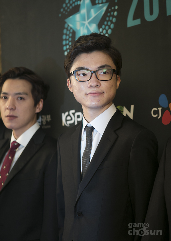 시상에 앞서 리그오브레전드 SKT T1의 '페이커' 이상혁이 포토월 행사에 임하고 있다.