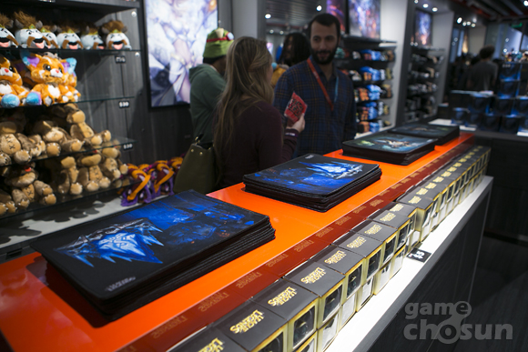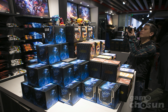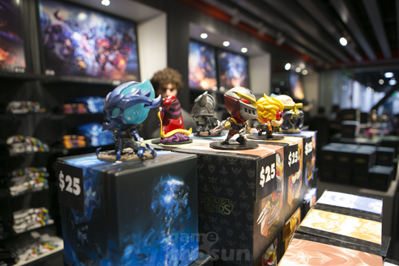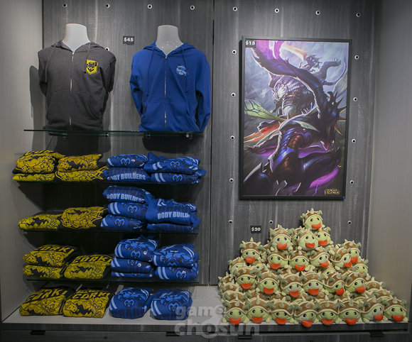 라이엇게임즈 본사 옆에 위치한 LCS 스튜디오에는 한 켠에는 리그오브레전드(이하 롤) 머천다이징 샵(머치 샵)이 위치한다. 이곳에서는 각종 롤 캐릭터 피규어와 티셔츠, 후드티 등 의류, 브로마이드, 인형 등을 판매하고 있으며 판매하는 상품들 대부분은 한국에서 온라인스토어를 통해 구입할 수 있다. 하지만 신상품이나 한정판 등 구하기 어려운 상품들도 마련되어 있어 현장 방문객들의 발걸음이 끊이질 않는다.