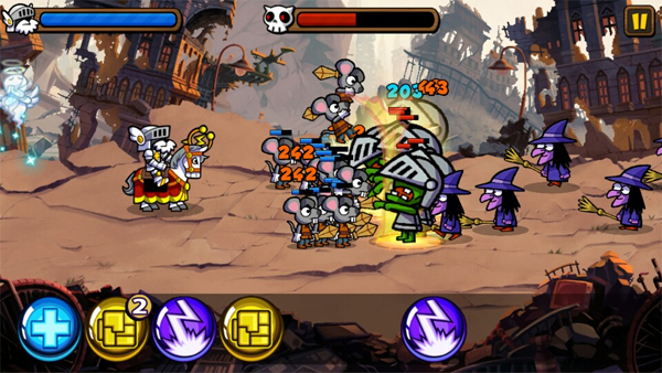 ▲ 디펜스 게임인 팔라독앤히어로즈는 RPG 요소를 부각하기위해 자동 사냥 기능을 도입했다.