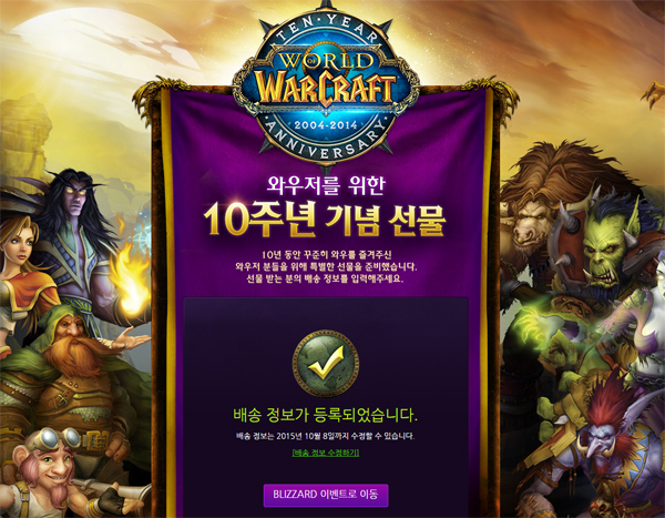 지난 9월 블리자드는 와우 공식 홈페이지를 통해 지난 10년간 게임을 즐긴 유저를 위한 기념 선물을 제공한다고 전했다.