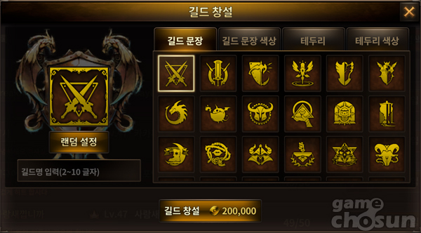 ▲ 길드 창설 시 문양과 색상, 테두리 등 다양한 부분을 커스터마이징 할 수 있다.