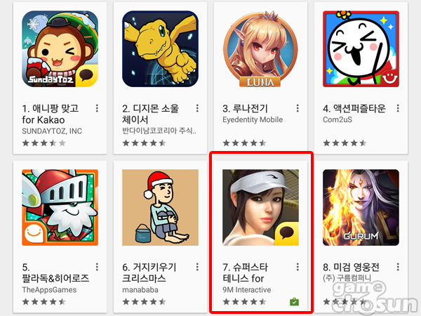 엔진(대표 남궁훈)이 서비스하고 나인엠인터렉티브(대표 김성훈)가 개발한 모바일 스포츠게임 '슈퍼스타테니스 for Kakao(이하 슈퍼스타테니스)'가 구글 플레이 인기 순위 10위권에 진입하며 눈길을 끌고 있다.