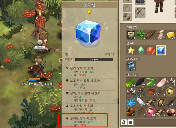 ▲ 블루잼을 이용하면 SP 회복력을 올릴 수 있다.