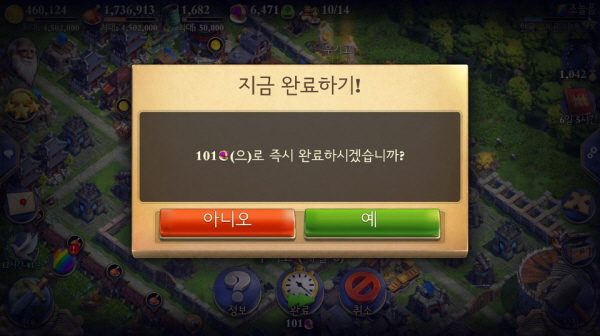 과금은 시간을 단축하는데만 쓰인다. 게임 내 캐시인 왕관은 자원이 부족해 구입하거나 건물을 완성하는 시간이 길어 즉시 완료하는데 사용된다. 물론 병과 습득 등 부수적인 과금제도 있지만 대체적으로 심플한 과금 방식이다.