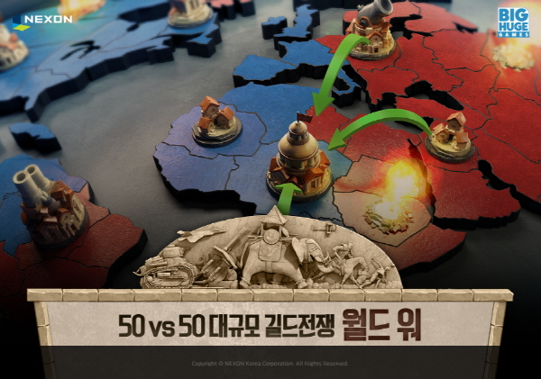2015년 12월 4일에는 '도미네이션즈'에 최대 100명까지 50대 50까지 즐길 수 있는 대규모 길드전쟁 '월드 워' 콘텐츠가 업데이트 됐다.