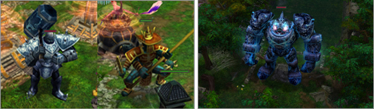 ▲ 각 진영 방어를 담당했던 수호신(왼쪽)과 맵 중앙에 위치한 더트골렘