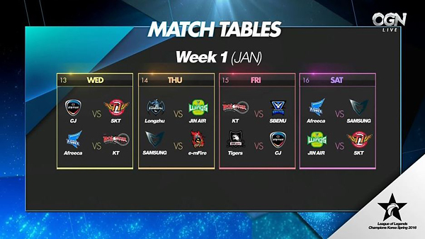 ▲ 2016 롤챔스 스프링 시즌 1라운드 첫 주차 일정