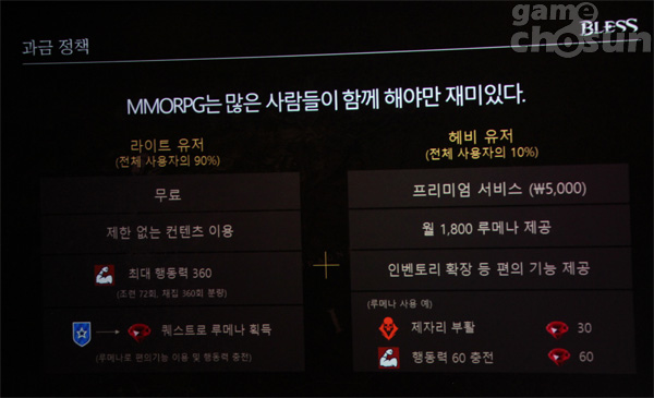 ▲ 블레스는 90% 이용자가 무료로 플레이하게끔 하는 것을 목표로 삼았다.