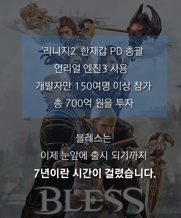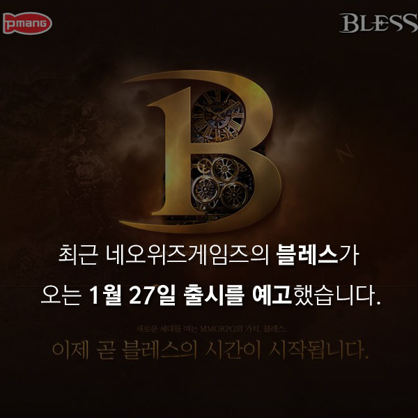 7년여의 개발 기간이 걸린 네오위즈게임즈의 온라인 기대작 MMORPG(다중접속역할수행게임) '블레스'가 오는 1월 27일 오전 8시 공개 서비스를 예고했습니다.