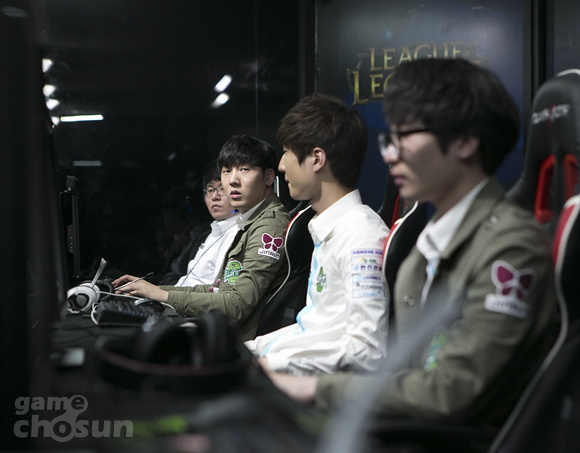 진에어 그린윙스가 22일 서울 용산 e스포츠 상설경기장에서 열린 '꼬깔콘 롤챔스 코리아 스프링 2016'에서 아프리카 프릭스를 2대 1로 제압했다.