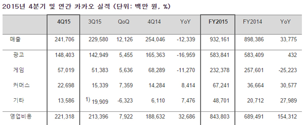 ▲ 카카오 2015년 4분기 및 연간 실적, 한국국제회계기준(K-IFRS)