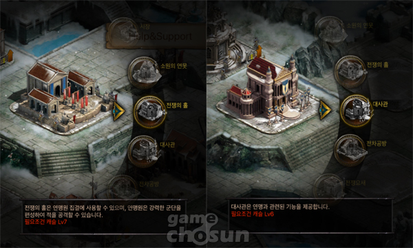 현재 유저들 사이에게 가장 중요하다고 평가되는 건물은 '전쟁의홀'과 '대사관', '의무대' 3가지다.