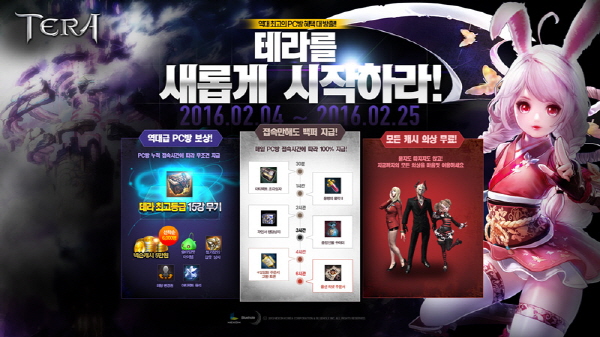PC방에서 '테라'를 즐기는 사용자들은 테라 이용 누적 시간에 따라 최상위 등급의 장비를 비롯해 펫 아이템과 넥슨 캐시 등을 받을 수 있다.