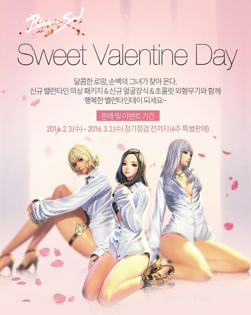 예쁜 캐릭터 디자인이 매력인 엔씨소프트의 '블레이드앤소울(이하 블소)'도 발렌타인데이를 맞아 남심 설레게 만드는 '순백의 발렌타인 패키지'를 출시했다.