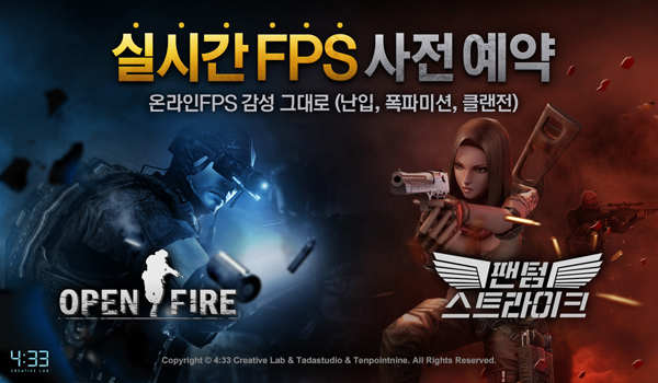 4:33은 3월 '오픈파이어'와 '팬텀스트라이크'를 시작으로 올해 총 6개의 슈팅·FPS게임을 선보인다.