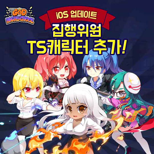 TS 캐릭터들은 귀여운 외모와 강력한 스킬로 색다른 매력을 느낄 수 있는 갓오브하이스쿨의 핵심 콘텐츠 중 하나로 이번 iOS 버전에 추가된 TS 캐릭터는 원작에서도 인기가 많았던 집행위원 캐릭터들이다.