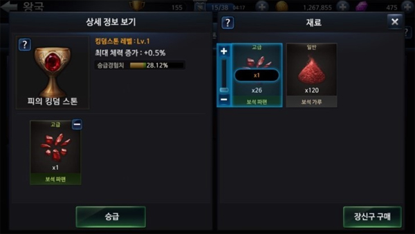 ▲ 획득한 킹덤스톤은 장신구 분해 재료를 이용해 강화할 수 있다.