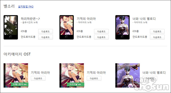<아키에이지는 모든 곡이 보컬이고 다운로드가 가능한 것이 특징>