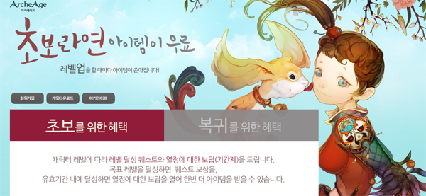 MMORPG '아키에이지'도 초보 및 복귀 이용자 끌어안기에 적극 나서고 있다. 최근 엑스엘게임즈는 초보 및 복귀 이용자들이 게임에 쉽게 적응할 수 있도록 다양한 혜택을 마련했다.