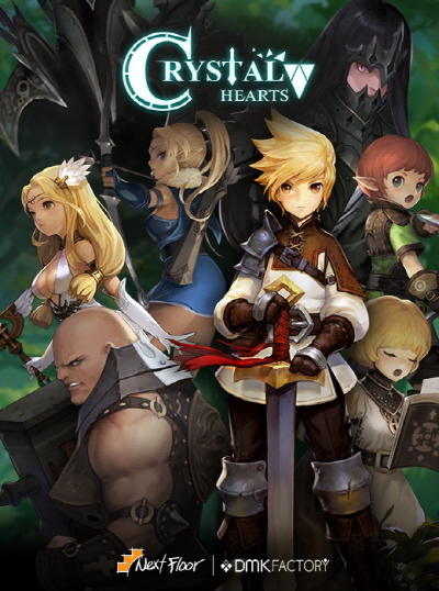 '크리스탈하츠'는 스타트업 개발사 DMK팩토리의 첫 번째 프로젝트이자 넥스트플로어 첫 퍼블리싱 타이틀이다. 이 게임의 특징은 400여 종의 캐릭터를 중심으로 4명의 캐릭터로 구성된 파티 플레이를 통해 전술을 구사하는 것이다.