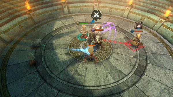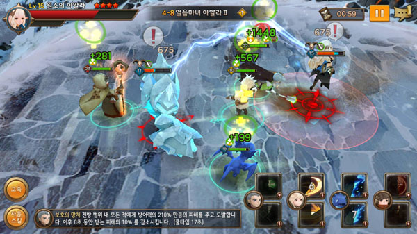 실시간으로 움직이는 캐릭터는 터치 후 드래그로 우선 순위를 정해 공격하거나 체력이 없는 영웅은 뒤로 후퇴 시켜 체력을 회복하는 등 콘트롤의 묘미를 아레나에서 느낄 수 있다.