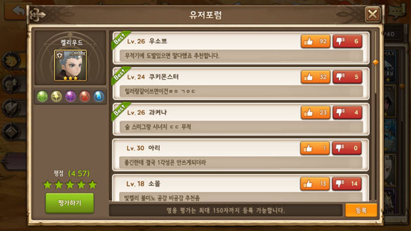 ▲ 자신이 보유한 영웅에 대해 모른다면 '유저포럼'을 이용하자.