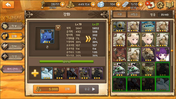 우선 3성 영웅까지는 레벨업이 수월한 편에 속한다. 하지만 자신의 영웅이 4성 이상이라면 레벨업에 대한 지루함을 느낄 것이다. 뿐만 아니라 아이템 파밍, 진화까지 신경쓴다면 영웅 육성에 대한 부감감은 커진다.