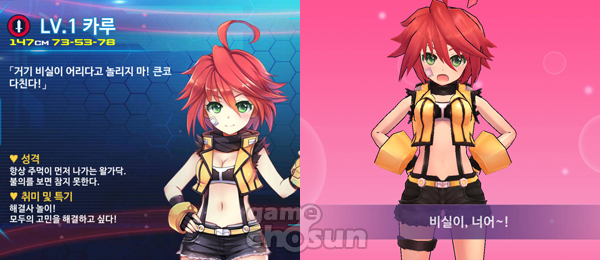 반면 카루와 율리아는 활발한 성격을 가진 로리타형으로 율리아는 제복을 좋아하는 유저들의 취향을 저격하는 캐릭터이며 카루는 147cm의 가장 작은 키를 가지고 있어 가장 로리스러운 매력을 가지고 있다.
