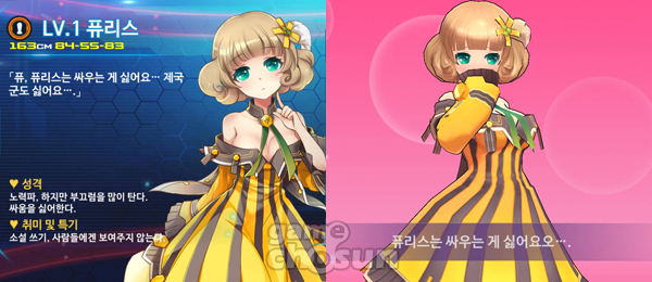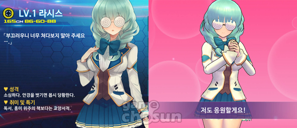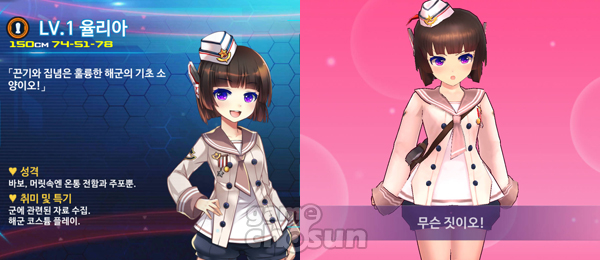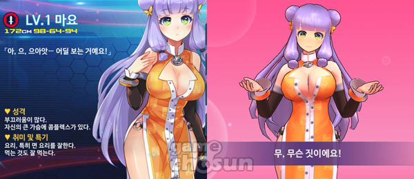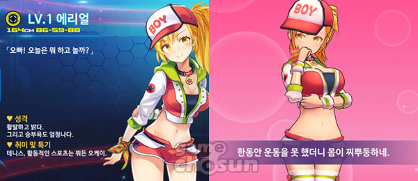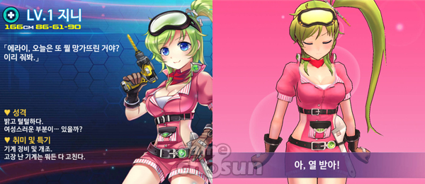 반면 슈트정비공 컨셉의 지니와 스포츠걸 에리얼은 활동적이고 보이시한 매력을 좋아하는 유저들에게 적합한 캐릭터로 관심 분야인 기계나 부품, 스포츠 관련 용품을 선물하면 호감도를 급상승시킬 수 있다.