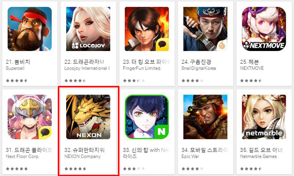 넥슨의 모바일 SPRG(전략역할수행게임) '슈퍼판타지워'가 구글플레이 매출 30위권에 진입하며 재도약을 노리고 있다.