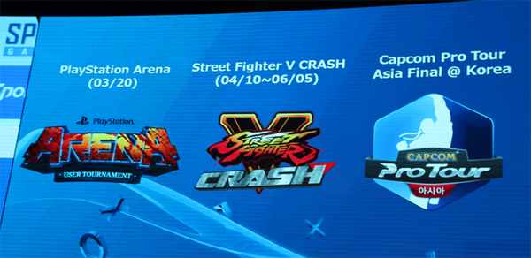 첫 걸음으로 SCEK는 인기 격투게임 '스트리트파이터5'의 e스포츠 대회인 ‘스트리트파이터5 크래쉬’를 후원한다. '스트리트파이터5 크래쉬'는 스포티비게임즈가 지난해 '테켄크래쉬'에 이어 선보이는 대회로 오는 4월 10일부터 6월 5일까지 한국에서 열린다. 총 3인이 1팀을 이뤄 총 상금 5400만 원을 두고 치열한 한판을 벌일 전망이다. 또한 전 세계 격투게임의 최강자를 가리는 캡콤컵의 출전권이 걸린 '캡콤 프로투어 아시아 파이널'도 한국에서 열린다.