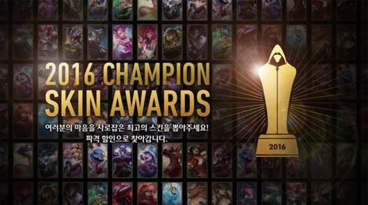 라이엇게임즈가 '리그오브레전드(롤, LOL)' 올해 최고 인기 스킨을 가리는 '2016 스킨 어워드'를 실시한다.
